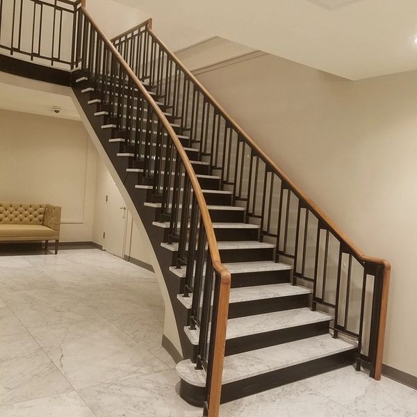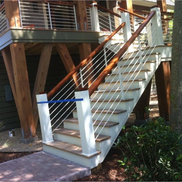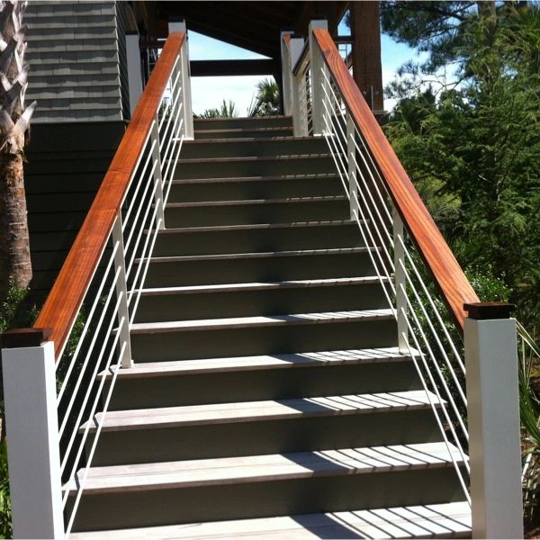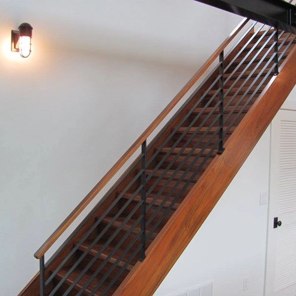 Custom wood grab rail & stair rails with horizontal pickets and custom wood rail cap
